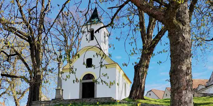 Návesní kaple sv. Jana Křtitele na nezvykle vyvýšené návsi v Chrášťovicích