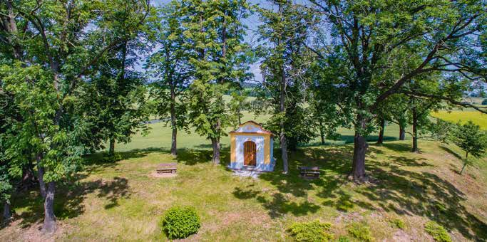 Kaplička sv. Jana Nepomuckého z let 1830–1840 na návrší při silnici na Volenice